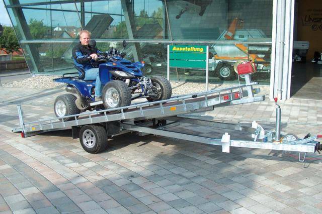 - Massive, 850 mm hohe Stahlgitterauffahrrampe über die gesamte Fahrzeugbreite, mit Rutschhemmung und geringem Windfang sowie Gasfederunterstützung für leichtes Handling